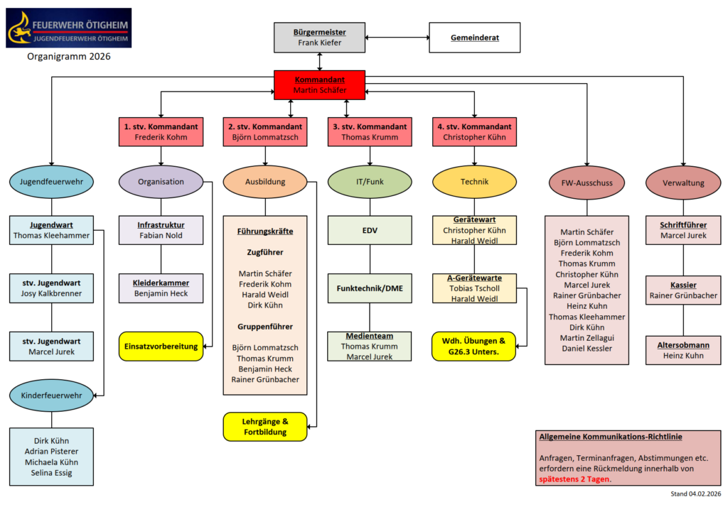 Die Freiwillige Feuerwehr Ötigheim zählt heute an die 40 aktive Mitglieder sowie 10 Alterskameraden und 16 Mitglieder der Jugendfeuerwehr. In der 2014 gegründete Kinderfeuerwehr gehören 17 Kinder im Alter von 6 bis 10 Jahren an.