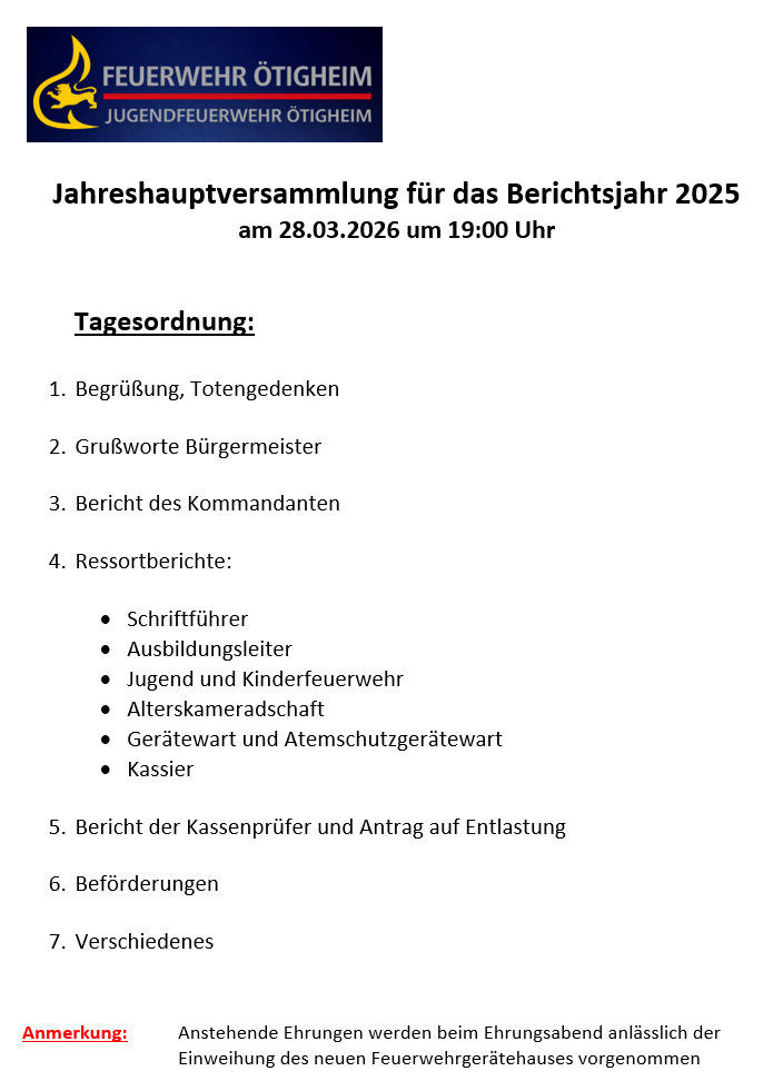 Jahreshauptversammlung für das Berichtsjahr 2025